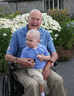The boy, named Patrick, is the son of one of the members of Bush’s security detail. He had lost most of his hair due to his cancer treatments, a Bush spokesman said.